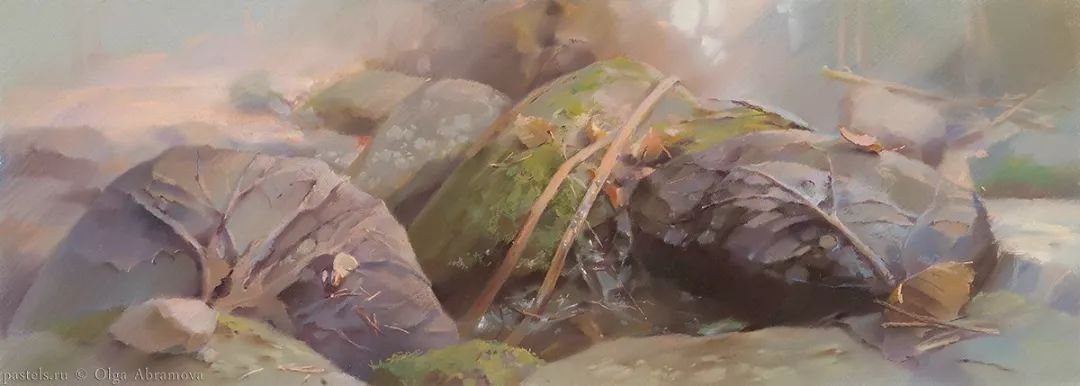 小贴士:色粉笔颜料是干且不透明的,较浅的颜色可以直接覆盖在较深的颜色上,在深色上着浅色可造成一种直观的色彩对比效果,而纸张本身的颜色也可以同画面上色彩融为一体。