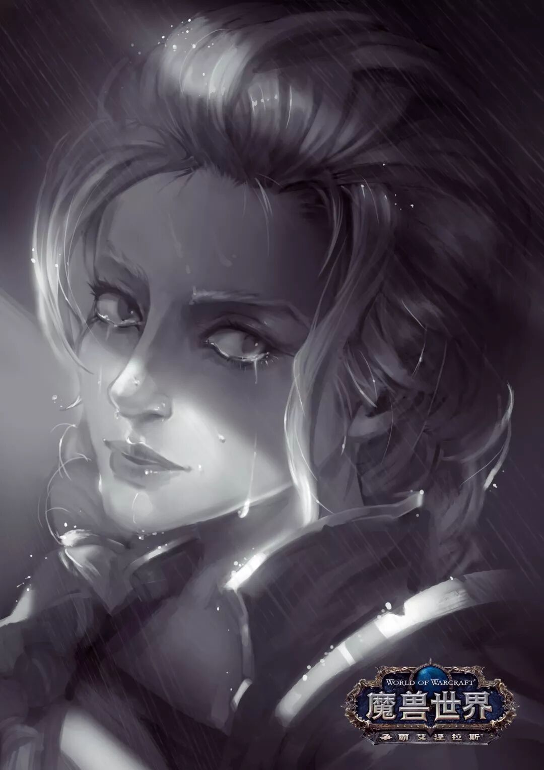 魔兽同人画作:雨中哭泣的吉安娜 库尔提拉斯海之女