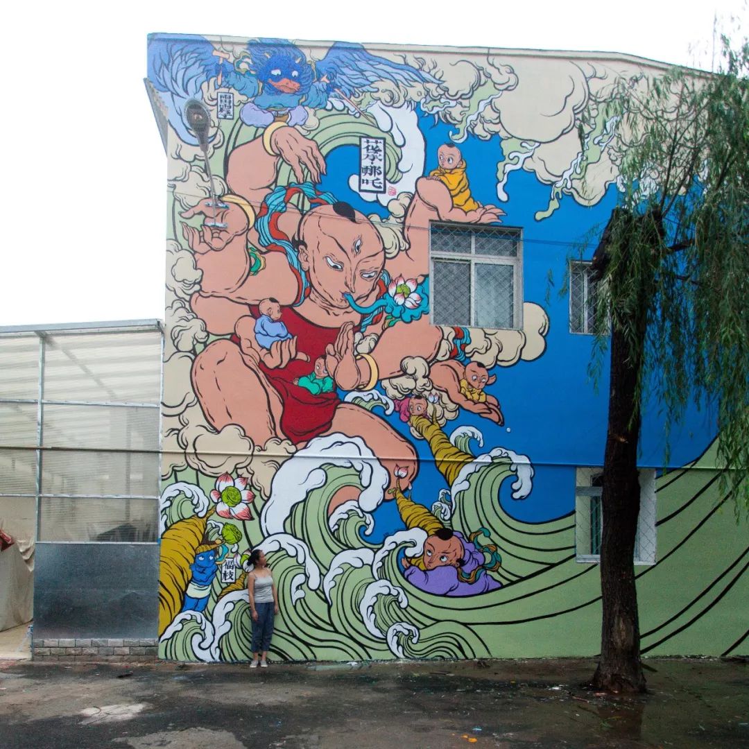 这是中国最天才的壁画艺术家文那在昌平的一所学校创作的