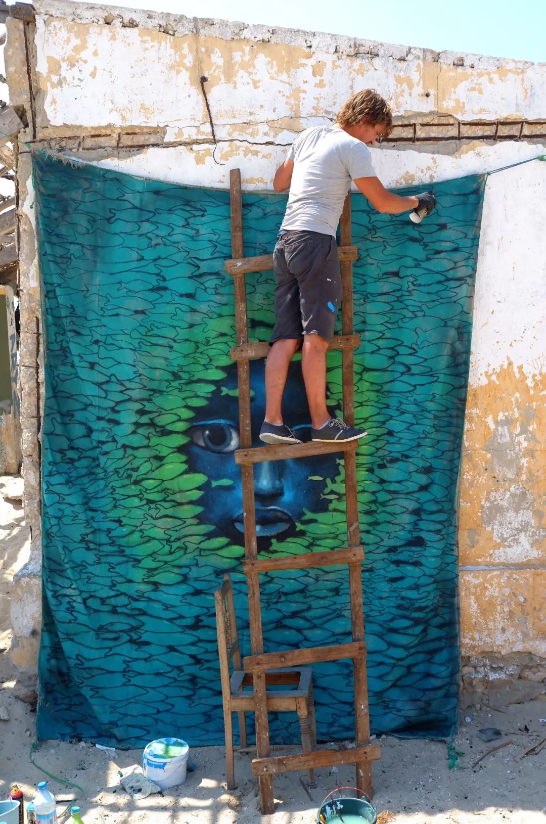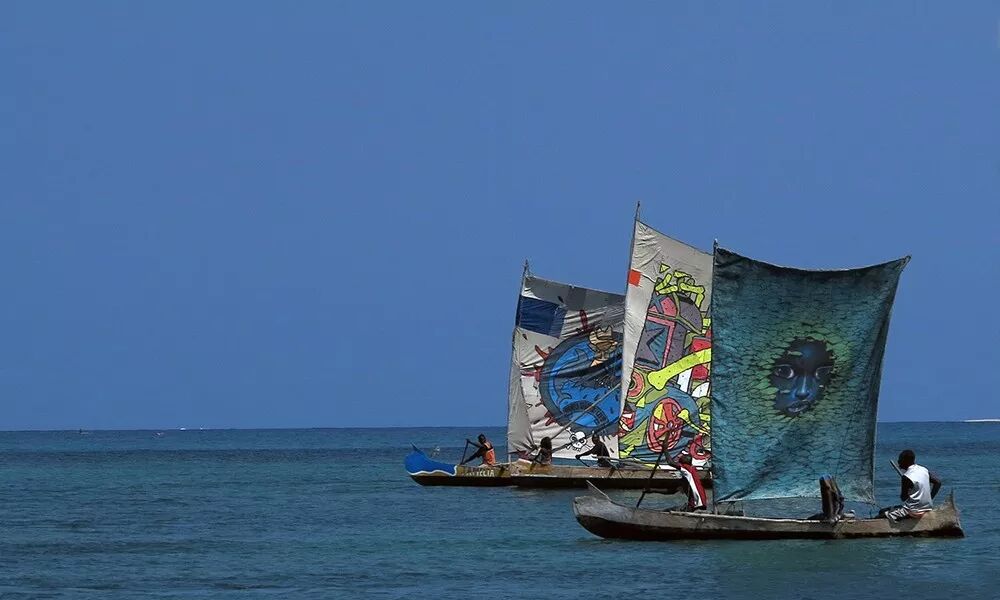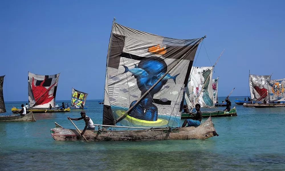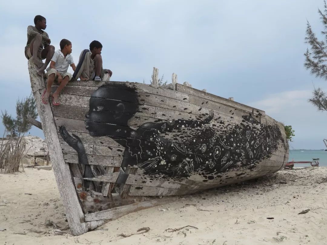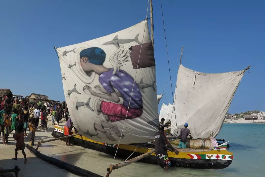 后来他和十几位墙绘艺术家,一起去了马达加斯加,当地有一个捕鱼部落叫Vezu,这次,他们为那里的渔民在帆船上作画