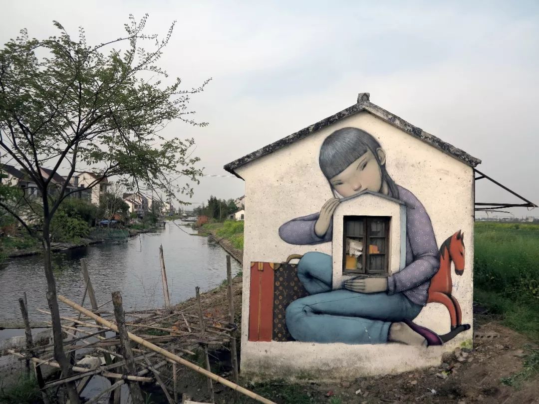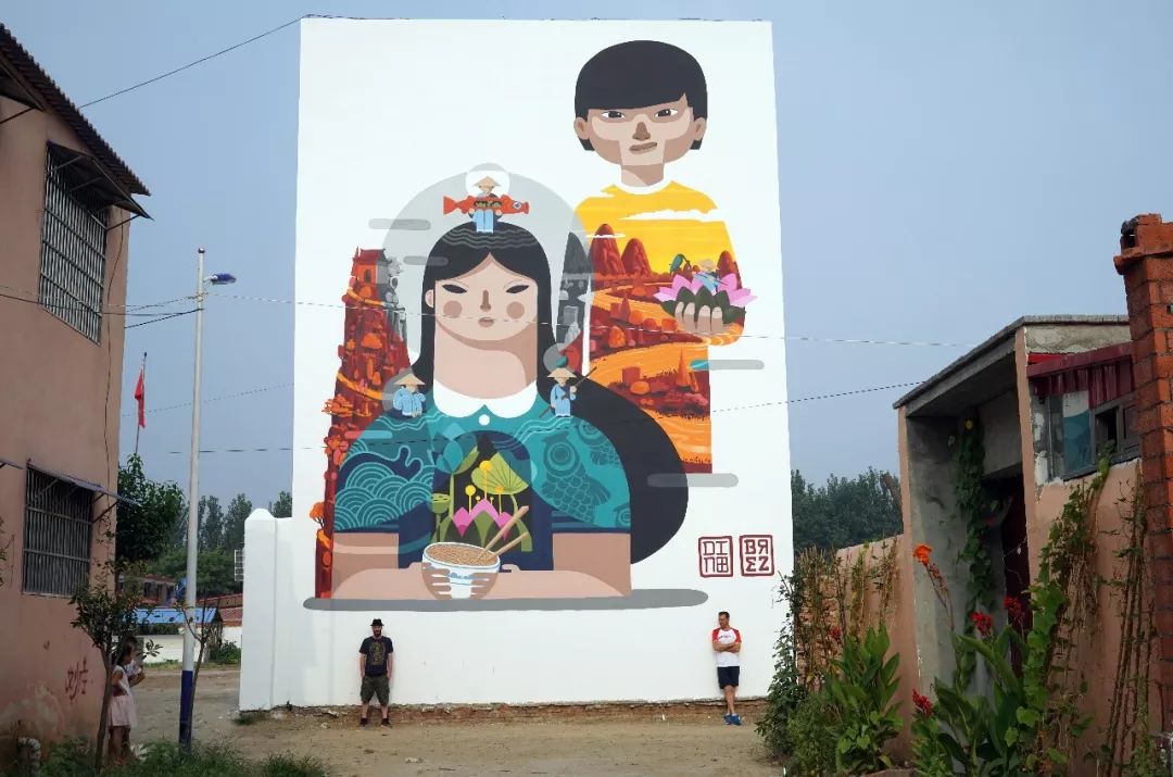 因为这些画,他开始在中国小有名气。很多人慕名而来请他去创作,他的画开始出现在广阔的农村天地,给小镇的人们带去了街头艺术