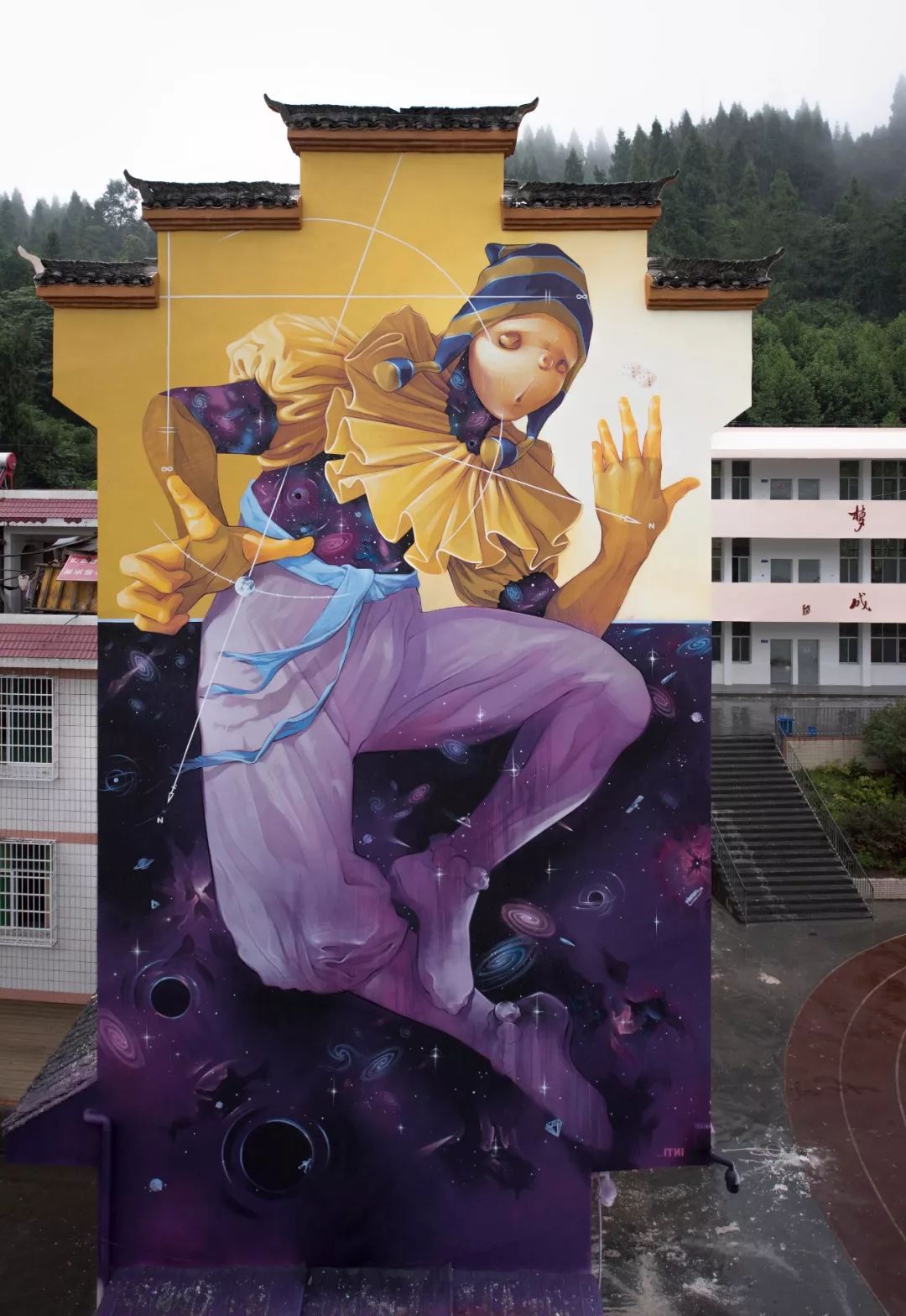 这是智利艺术家INTI在湖南省吉首市太平希望学校的创作