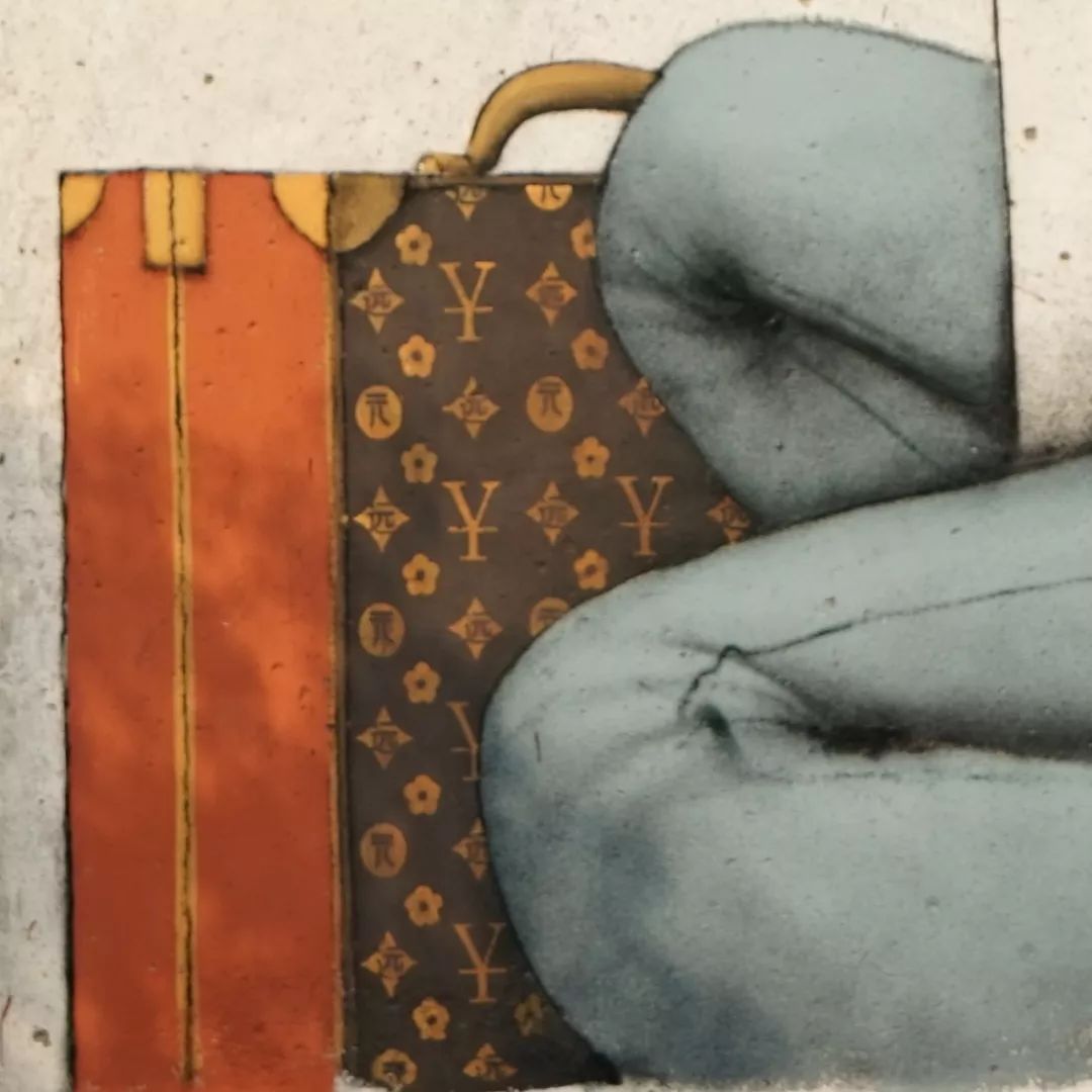 身边的LV箱子表示他们要在城里赚钱,用“远”代替“元”表示要离家远行,仔细推敲,这些画背后赋有深意
