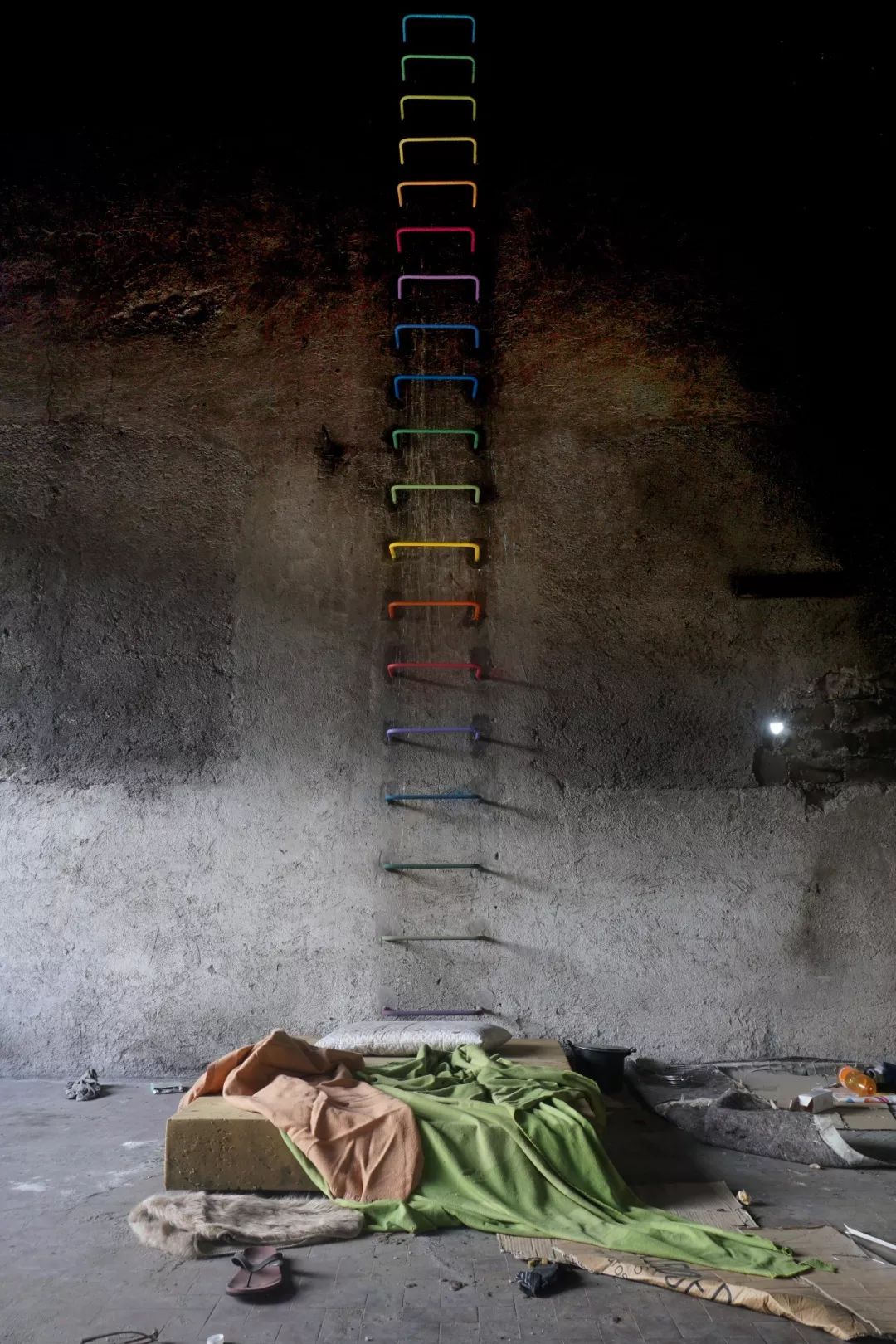 还在流浪汉居住的厂房里,他用明亮的色彩,为绝望中的人,画上通往梦想的阶梯