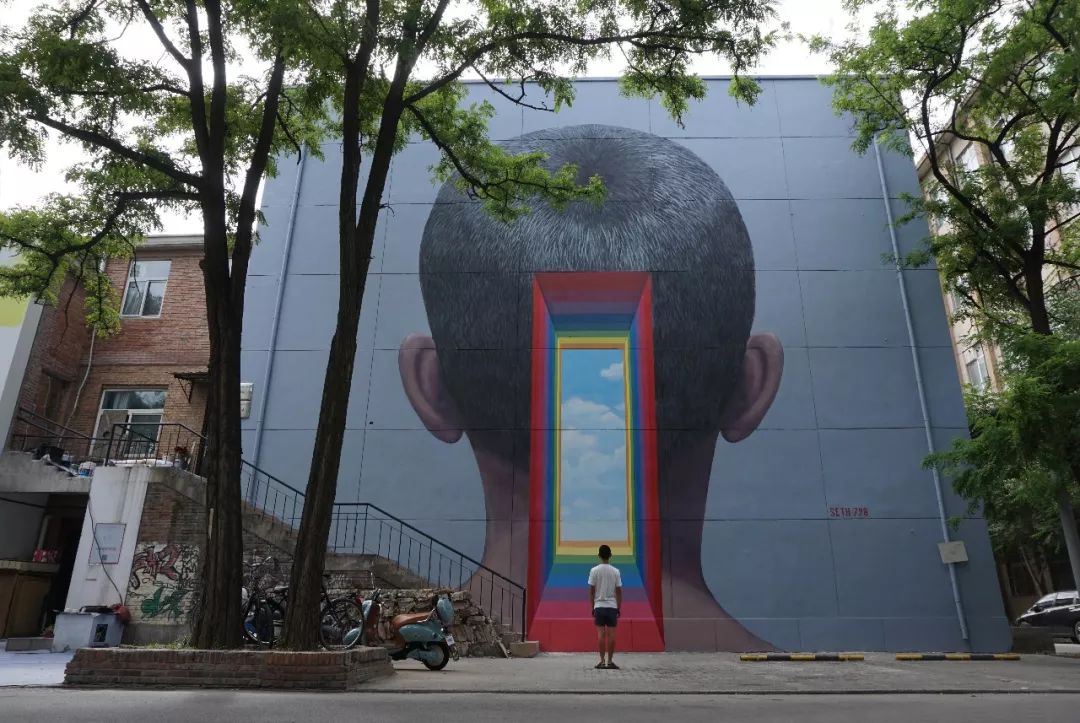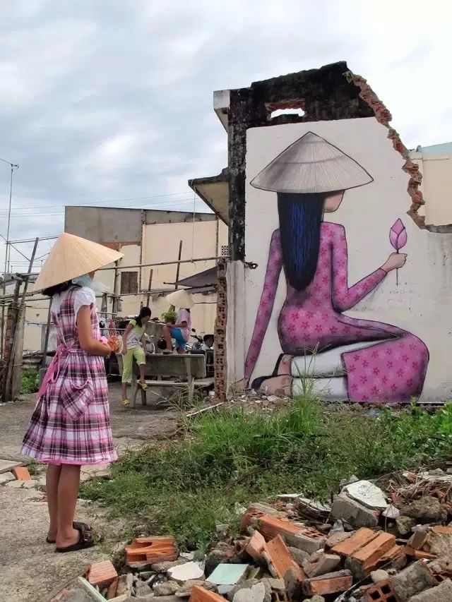 他的画始终跟中国传统文化相融合。在这个法国艺术家眼里,在文化不断被解构的今天,过去和传统仍然富有意义。而中国的街头“改造”,只是柒先生的作品一角。在世界很多不起眼的小角落里,他都留下了“大作”,下面带大家一一领略下