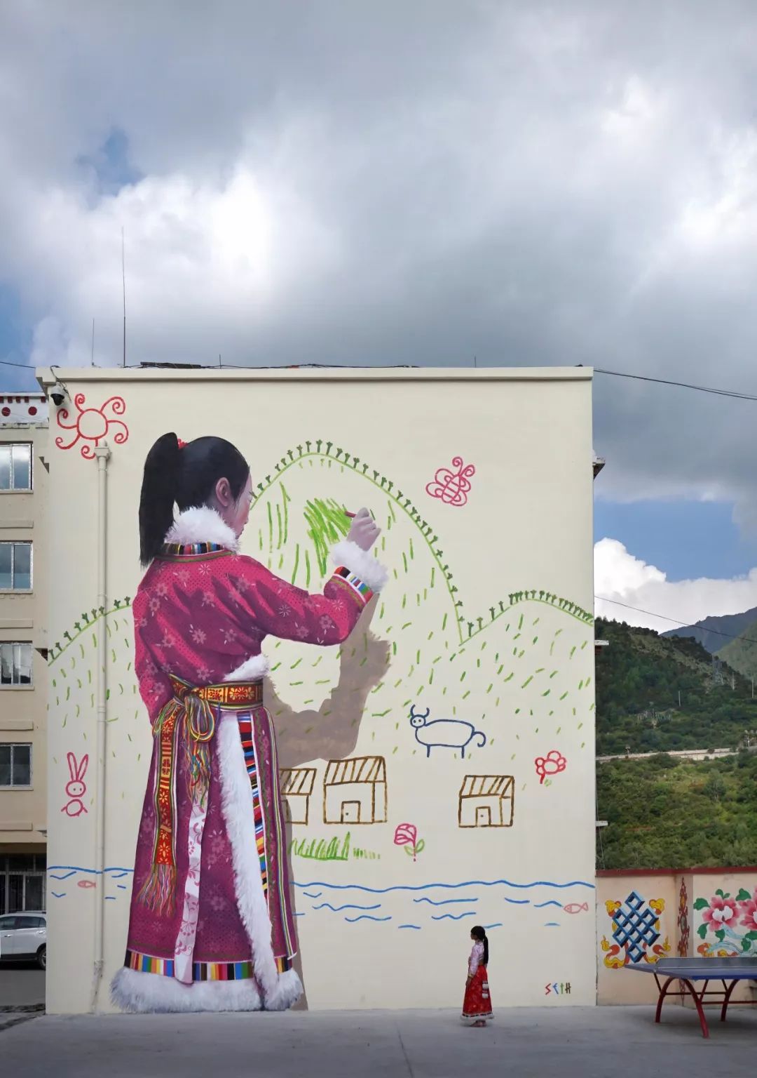 这是在在四川一个藏族聚居区柒先生和一个藏族女孩一起画的