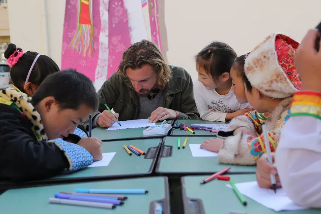 他们去了很多希望小学,为每个学校画了一幅画,这些颇有名气的艺术家,还会跟孩子之间有许多互动和交流