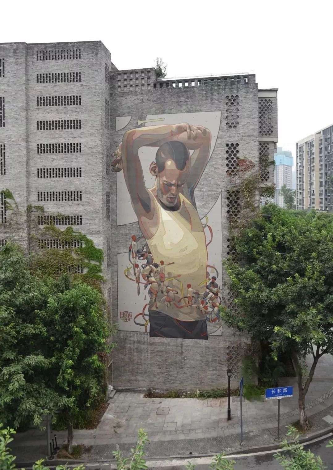 这是西班牙最著名的墙绘艺术家Aryz在重庆一所学校的创作