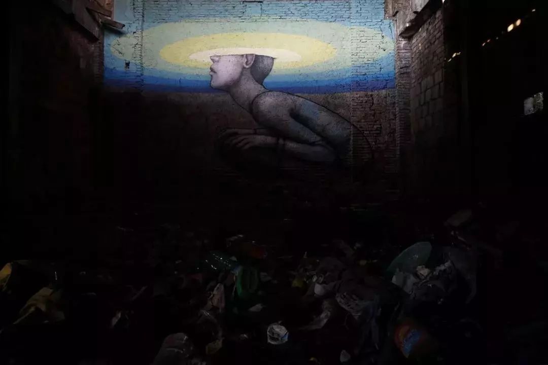 他最神奇的地方就是,通过画笔化腐朽为神奇,把这些糟糕的环境装饰地充满意境,特别是他创作的人物画像,能治愈生活在当地的居民