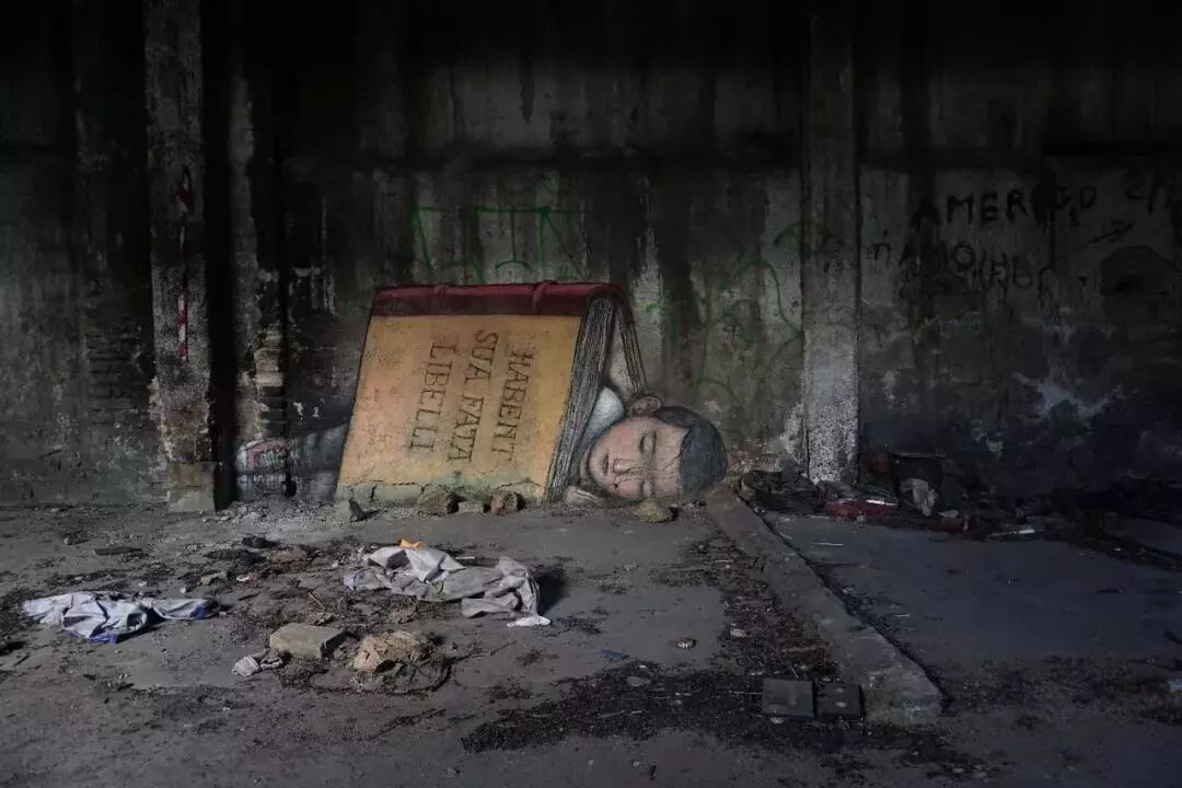 柒先生与别的艺术家有所不同,别人的作品都展示在高雅的艺术馆,而他的作品恰恰相反,都出现在全世界最脏乱差的街头,贫民窟、战争地、老居民区、废工厂......