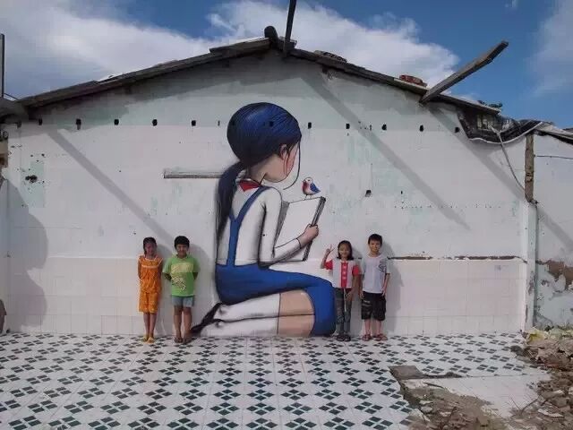 这些美好的图案不仅仅是装饰,更是糟糕生活环境中人们的心灵慰藉,也很可能是这些人接触艺术的少有机会。它们给人以希望,也把大家紧紧连接在了一起。我们感谢柒先生,在受到贫穷和战争威胁、灾难发生的地区,他选择有意识地为大家描绘美好生活一面。