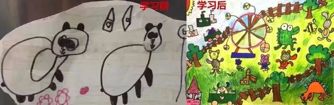 ? 5岁的奶酪小朋友,学习前后的绘画作品对比图 ?