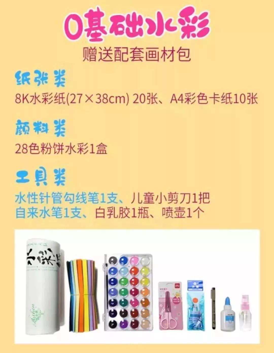 对了,咱们的课程不仅非常划算,现在买课,还随课赠送配套的水彩画具套装哦!大家千万不要错过啦!~