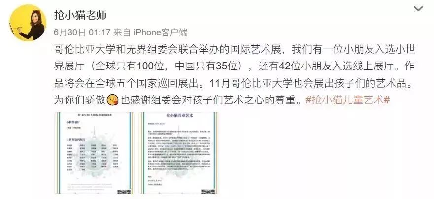 抢小猫老师是在线儿童创意绘画课创始人,她的课极受孩子们的喜爱,被先后引进到国内少年宫、美国幼儿园,带领全球11万孩子一起学习绘画。她学生的作品还被《喜羊羊与灰太狼》的编剧收录,作为新作剧本!