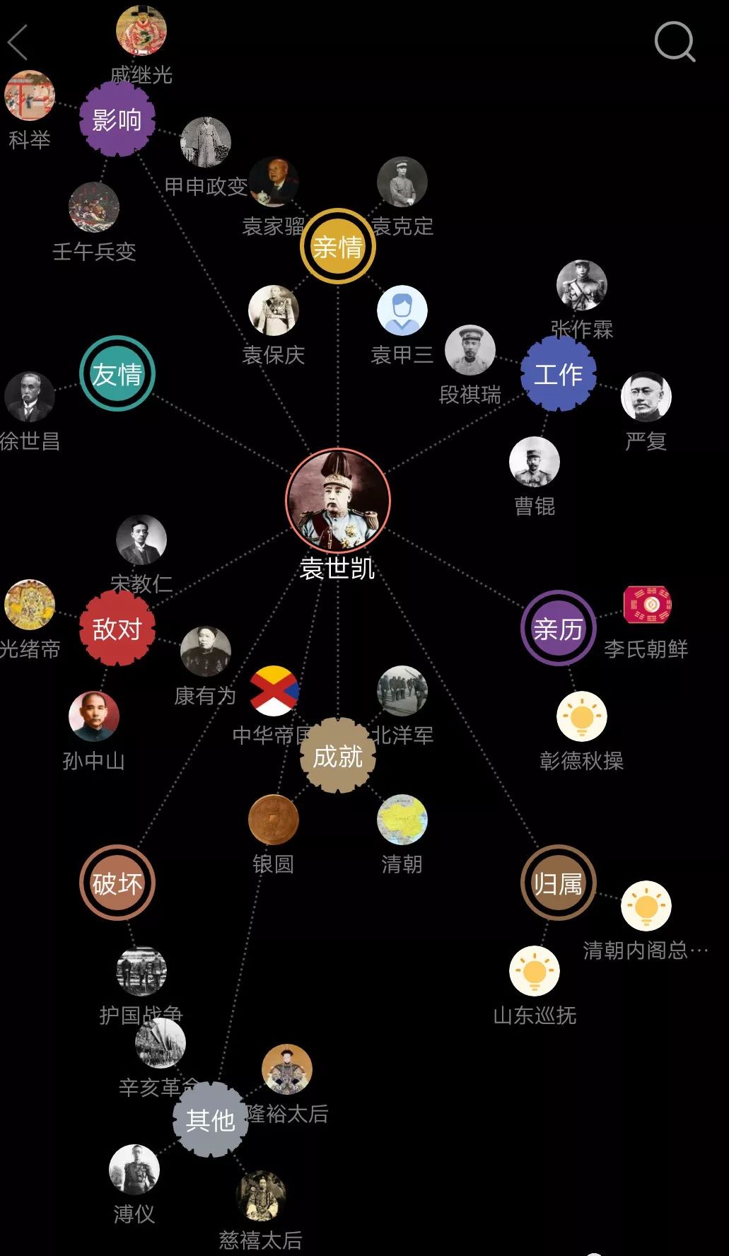 2.关系图谱:可以清晰了解某位历史人物的生活史