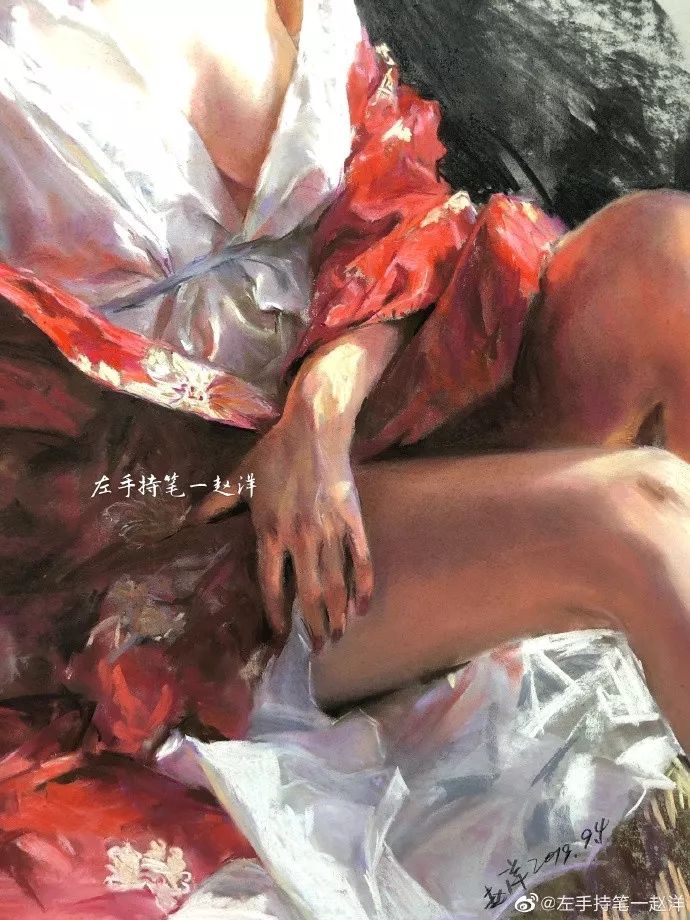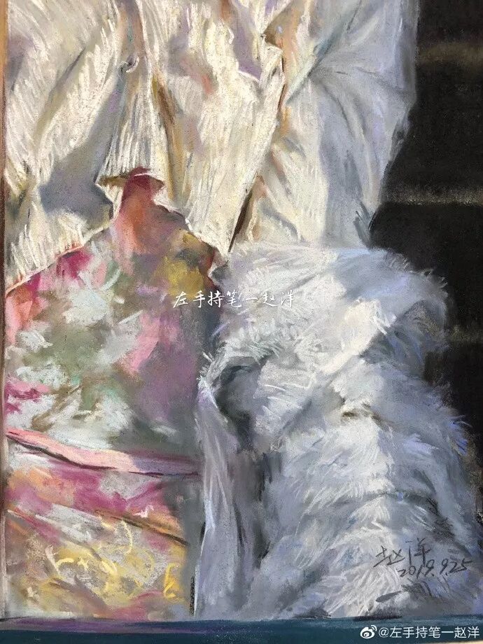 他十分注意每一个褶皱、每一道光影、每一个细节