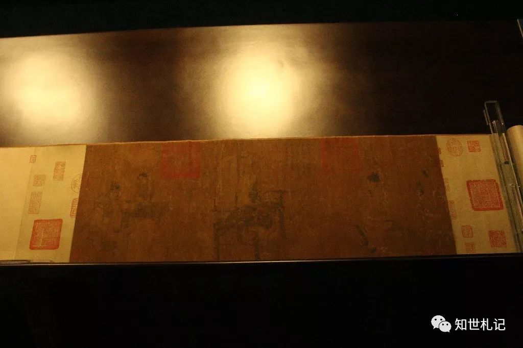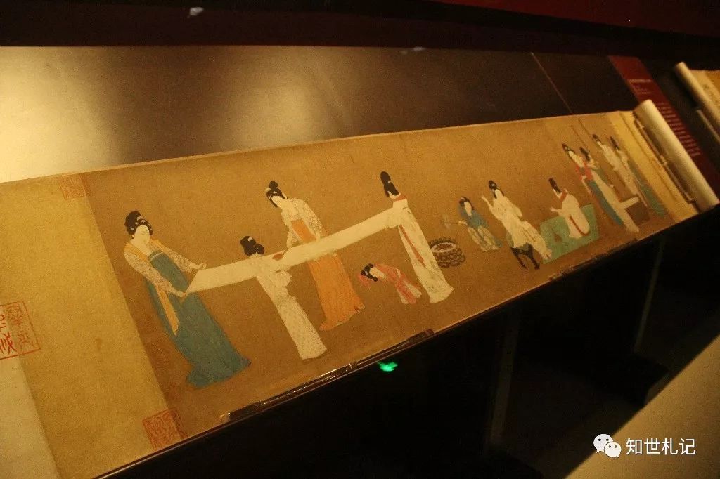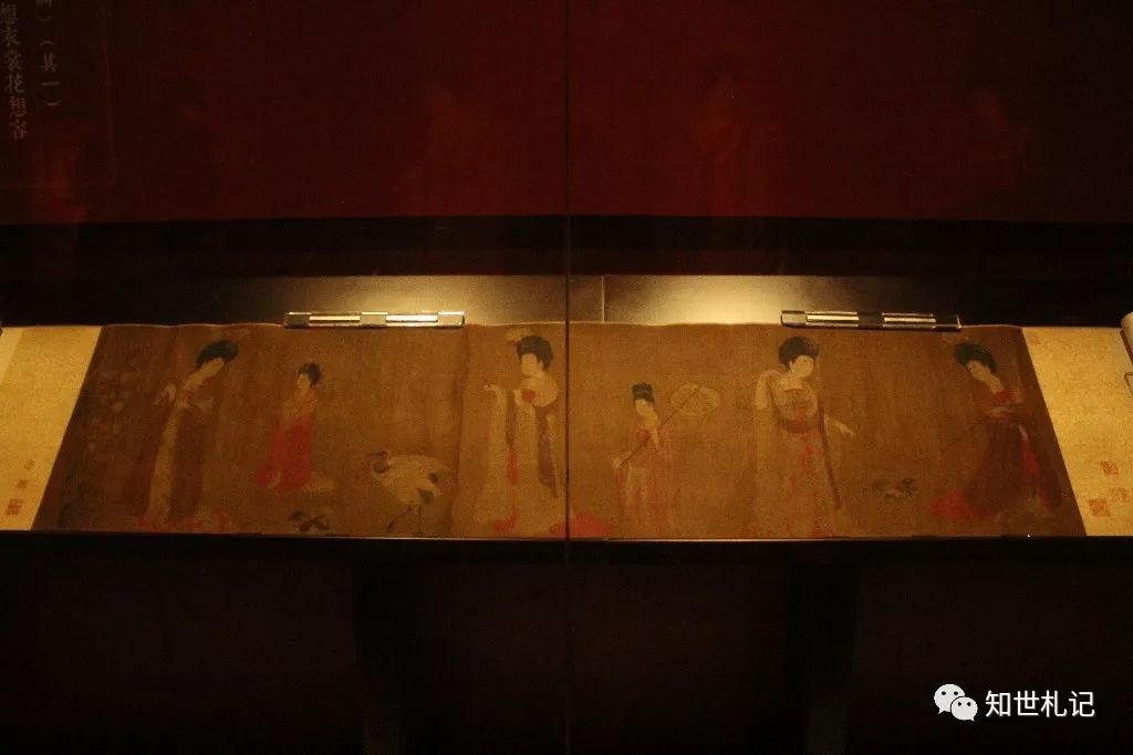 不过你知道吗,这副长达一米八的仕女图其实是三幅直绢拼接而成的哦,据考证推测可能是唐时用于胡床上的屏风画。然而景致与人物之间又有着相互呼应的巧妙关系,使得画面看上去毫不违和地像是几位贵妇赏花游玩的整体。