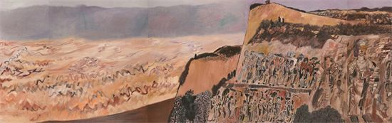 发布会现场黄河是中华民族的母亲河,古往今来孕育滋养了华夏文明,蕴含丰富的主题和意象。王克举以长卷形式、多维视角,描绘了黄河辗转回旋于中国大地的壮阔气象——从青海巴颜喀拉山脉冰封雪覆的高山到由川入陇的高山峡谷,从宁夏、内蒙到陕西、山西、河南,流经千沟万壑的黄土高原,奔腾入海,其间有冰封的雪山、险峻的峡谷、苍茫的高原,有跌宕起伏、湍急回旋之时,有雍容平阔、汪洋恣肆之态,艺术家情感中所状是自然的伟力、生命的欢歌,是亘古不息的时间的巨流。王克举不仅选取凝练黄河一系列代表性的地域景观,以写生的形式,表现黄河的节奏呼应生命之流从缘起到百转千回汇入大海的自然节奏,而且铺陈刻画着黄河所饱含的历史气息、生活脉络和民族精神,既是现实主义的又是意象表达的,作品细节带有微妙而又充满力度的韧性。它是大地湾文化、仰韶文化、齐家文化、马家窑文化、大汶口文化、龙山文化等幻化成的一抹色彩、凝练成的文化符号、积聚成的文化气象,它是飞瀑急湍间那层苍茫的雾色、是村台草木中那细腻的心绪、是纵横开阖间豪迈的情怀,是艺术家回溯黄河历史、回望黄河文化、回瞰黄河民生时的视野、情感和他对黄河独特的解读。王克举油画长卷表现的不仅是黄河的景观、黄河的文化,更是黄河的精神和境界,那是“忽听浪声浩长空,唯见黄河天上来”人与自然的碰撞,是小我与天地的交融;那是“九曲黄河万里沙,浪淘风簸自天涯”历史沧桑、人生浮沉的雍容豁达和坚韧顽强;那是先民历经自然洗礼、顽强生活、创造辉煌文明的智慧和生命力,是“白日依山尽,黄河入海流”的时空之思,是我们透过长卷感受到的震撼和感动。