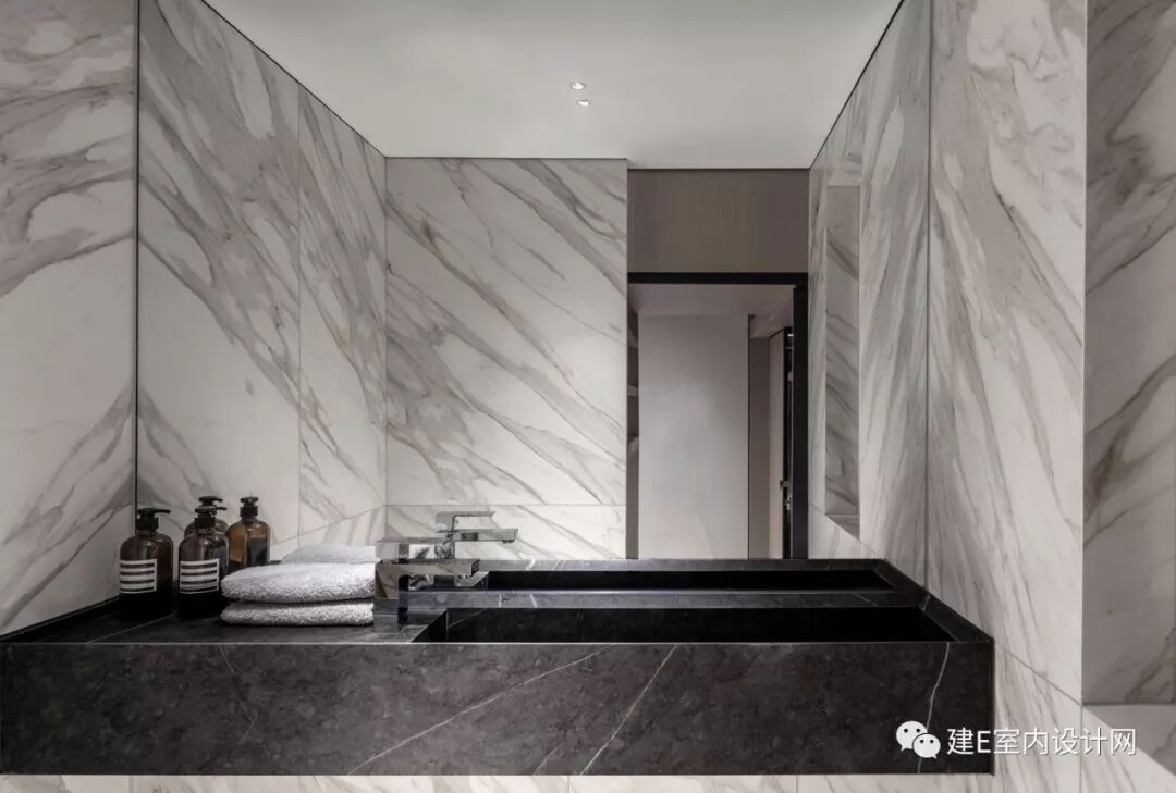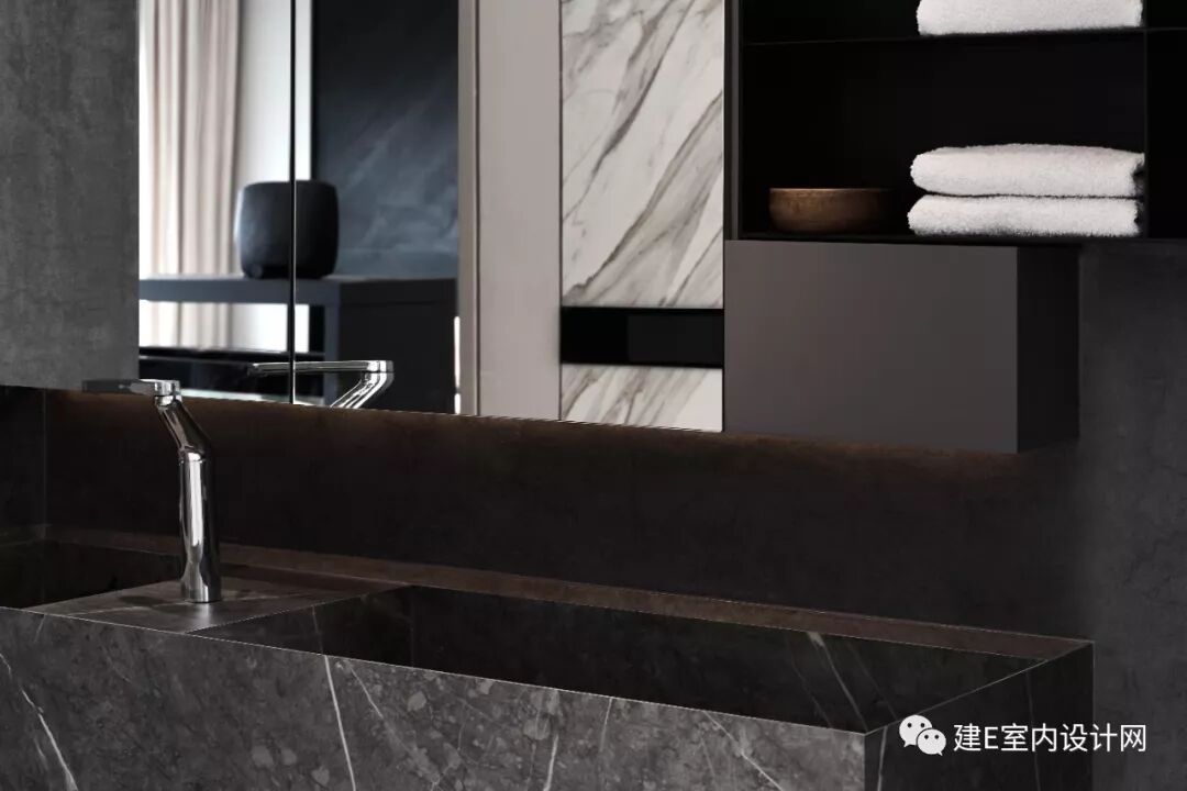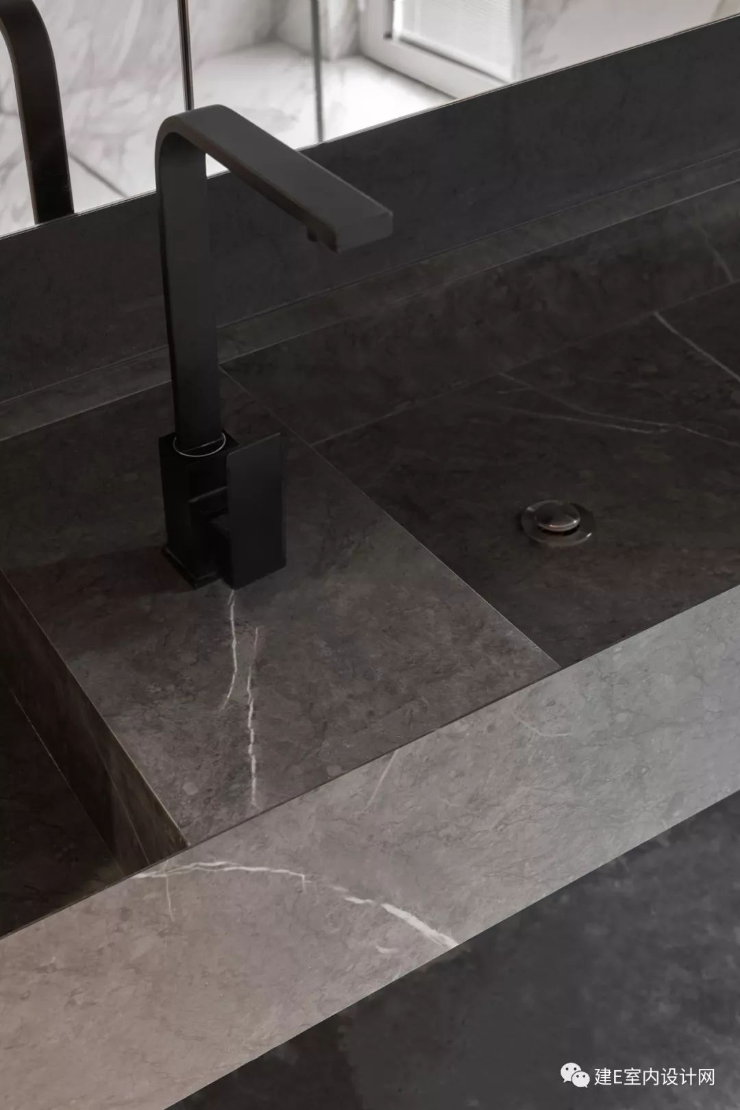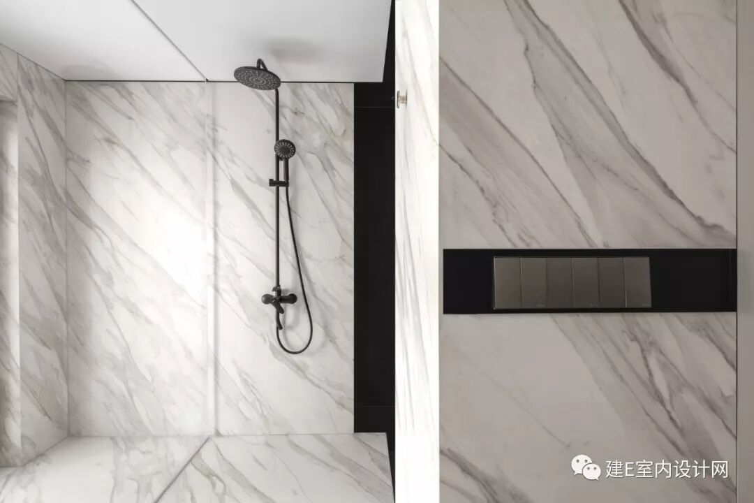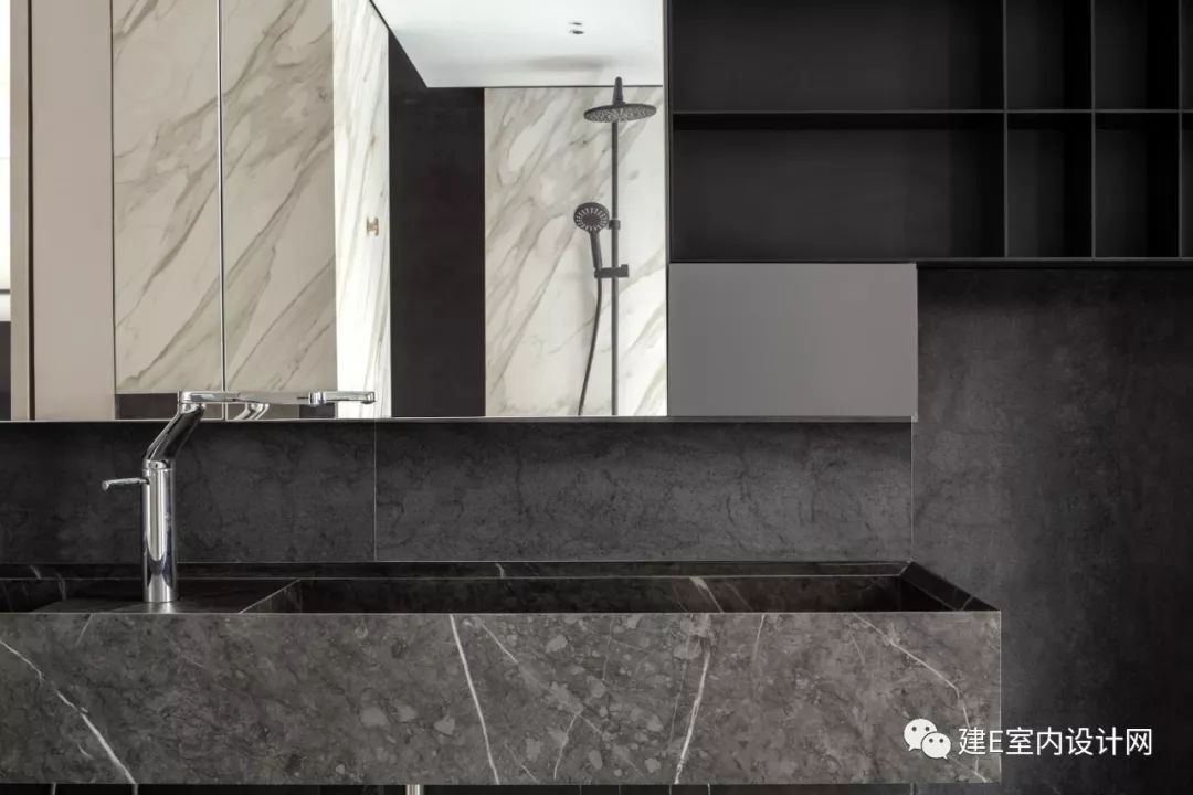 地面材料的选择上,公共区域使用耐用性极高的岩板,而卧室等私密空间,则选用了温暖且方便打理的木地板。