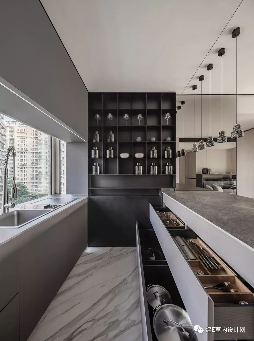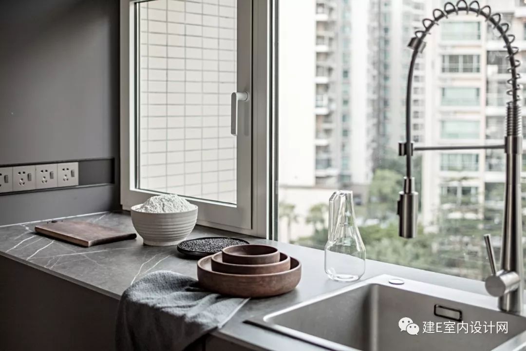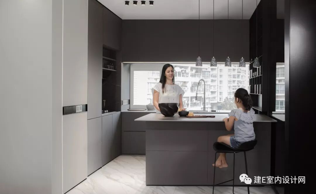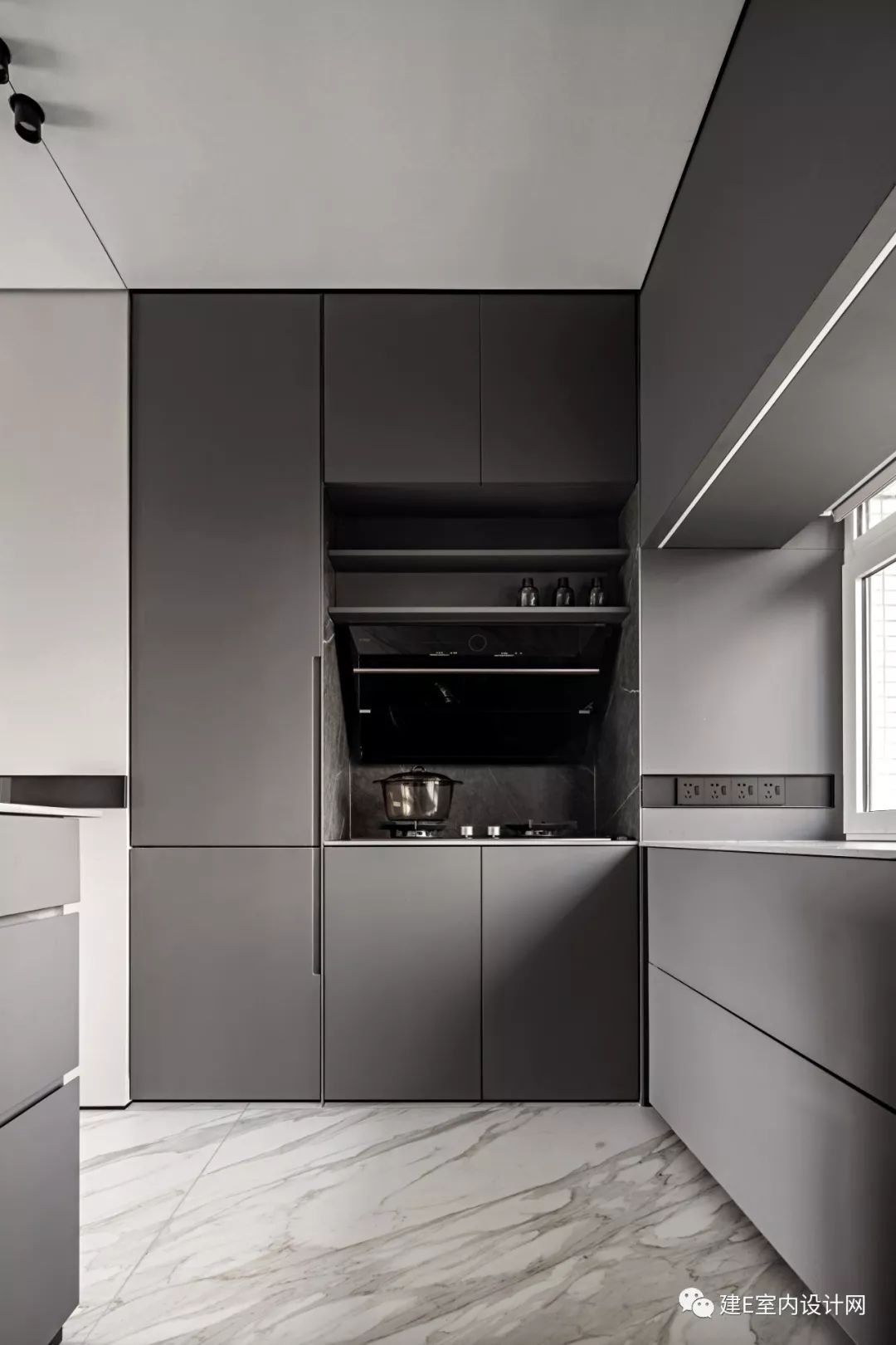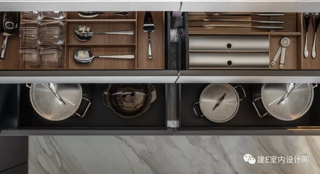 烘焙区设置了蒸箱和烤箱,是茜茜的“专属烘焙区”;厨房的中餐区有足够的分类收纳空间,满足了委托人对厨房储物的需求。