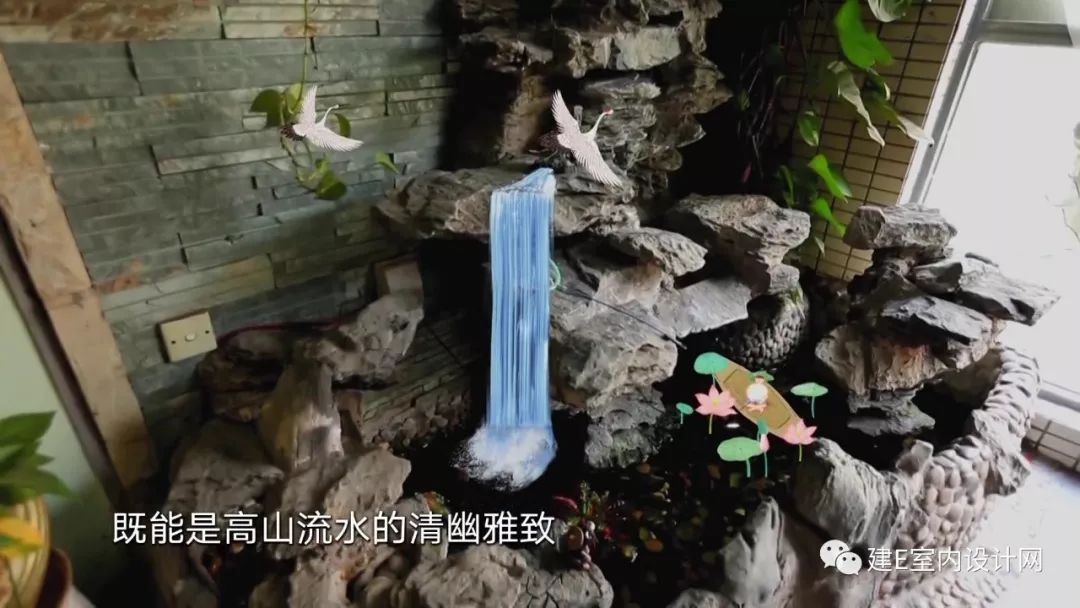 房子原有鱼池的清理工作很困难。考虑到到茜茜养鱼的兴趣爱好,设计师选择了一款带有自动过滤和自动换水系统的鱼缸,并亲自化身景观设计师,给新鱼缸进行了精心的景观布置。