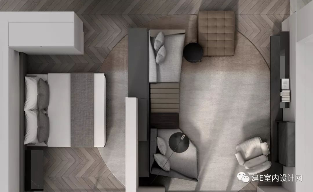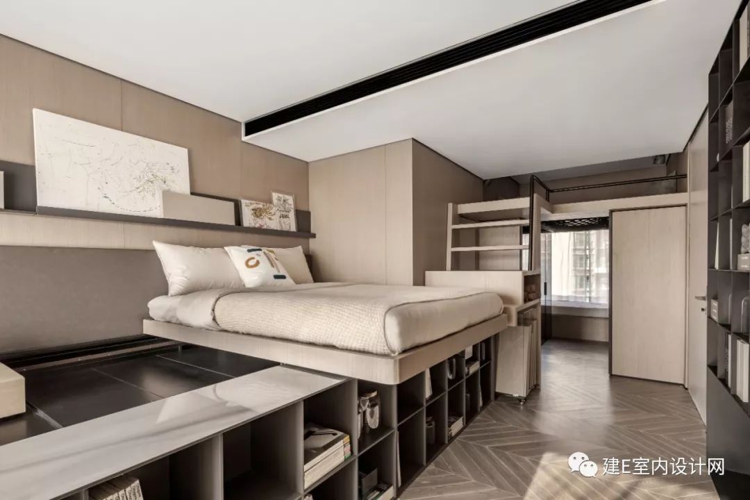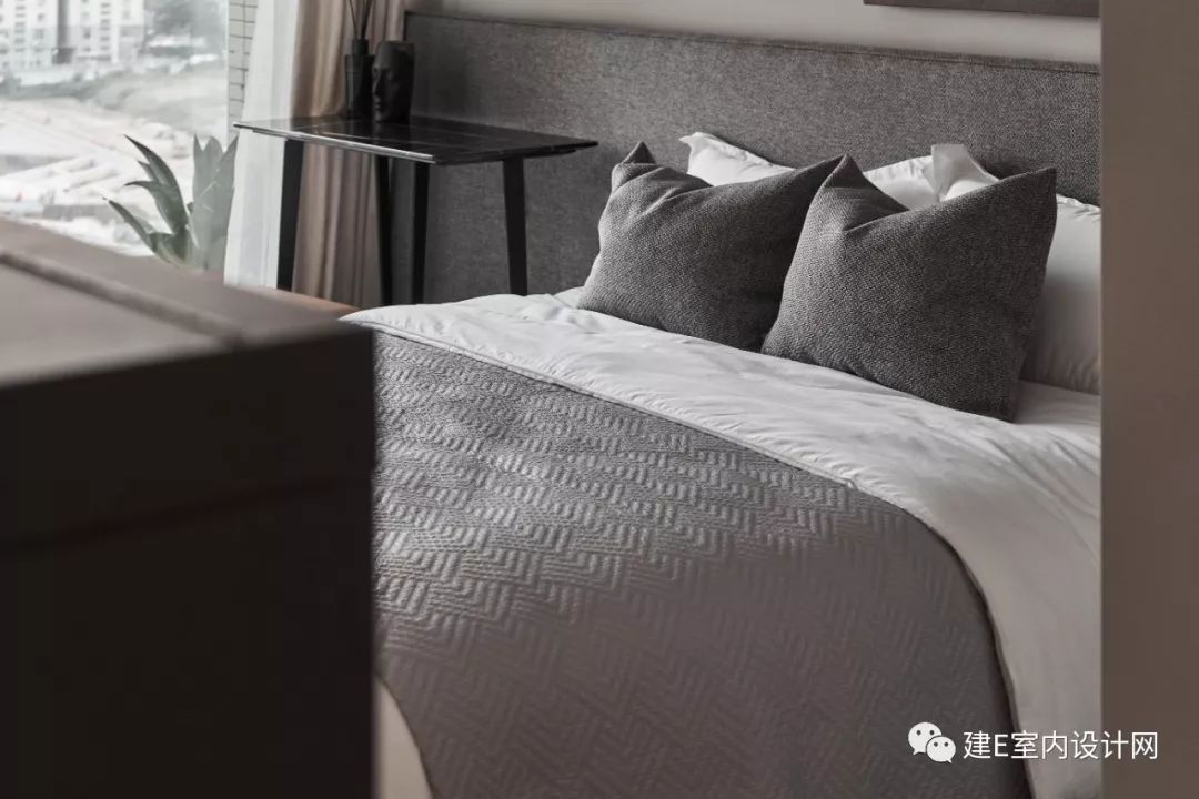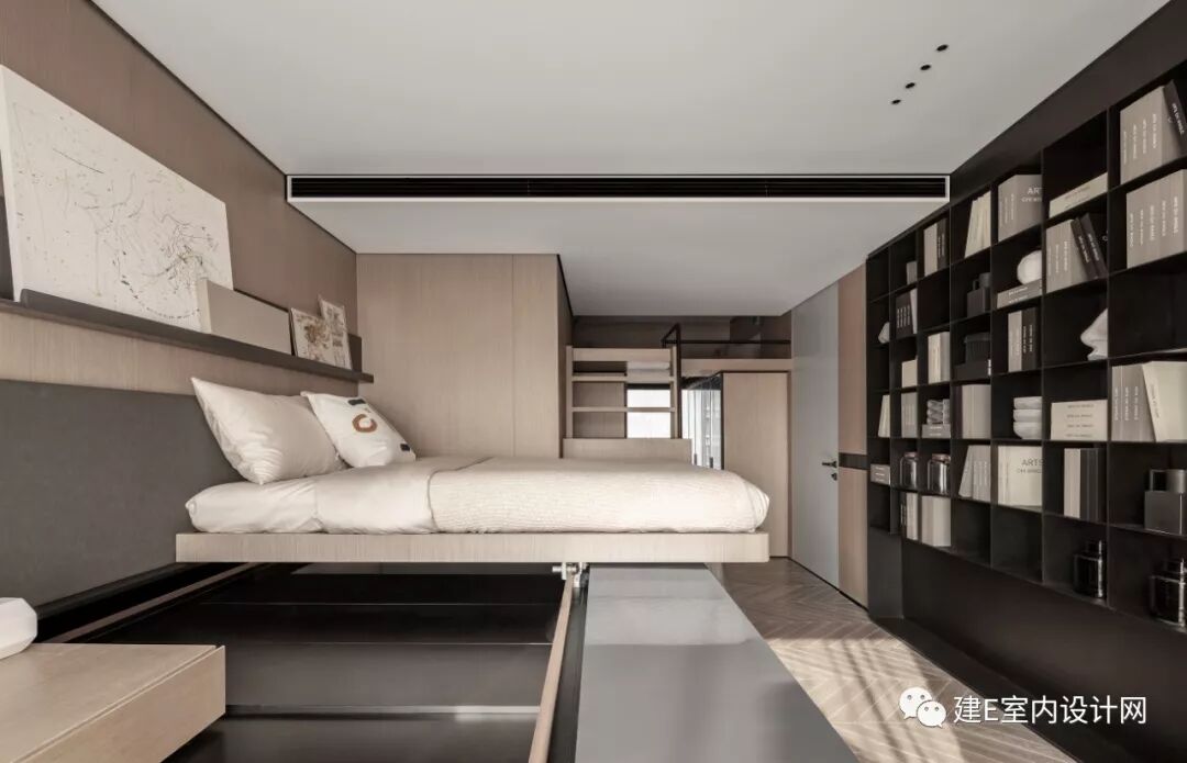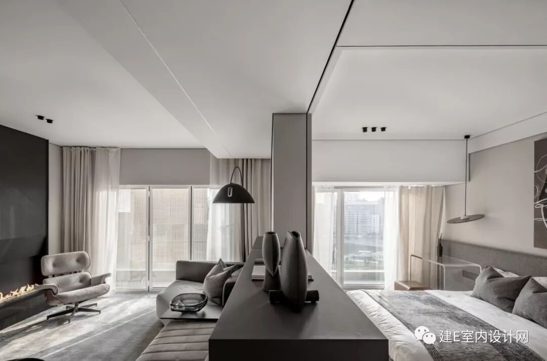 设计师为靠近客厅的主人房设计了一个可开可合的隔断,为委托人打造了一个可私密又可开放的舒适大空间。