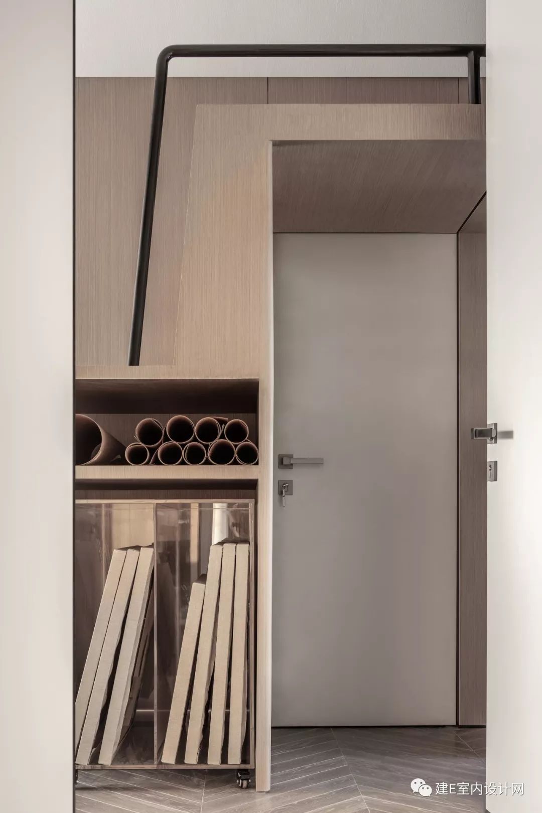 深圳潮湿多雨,因此设计师在室内的固装家具的设计上,选用了钢板烤漆材质。钢板柜硬度高,支撑力强,防潮不易变形,提供了大量耐用的开放式储物空间;同时,也在室内空间规划了多种多样的细致的收纳体系。整体收纳空间达到了25立方米。