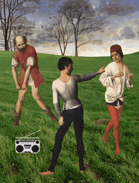 这位艺术家擅长将文艺复兴时期的古典油画制作成gif在他的脑洞里 意淫 宗教讽刺当代流行元素等等严肃的画面都会被演绎成黑色幽默
