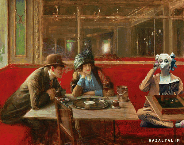 他不但把电影人物PS进画里同时还都以动态的方式来展现以另一种方式赋予了那些沉闷的作品生气拉进了它们和时代的距离
