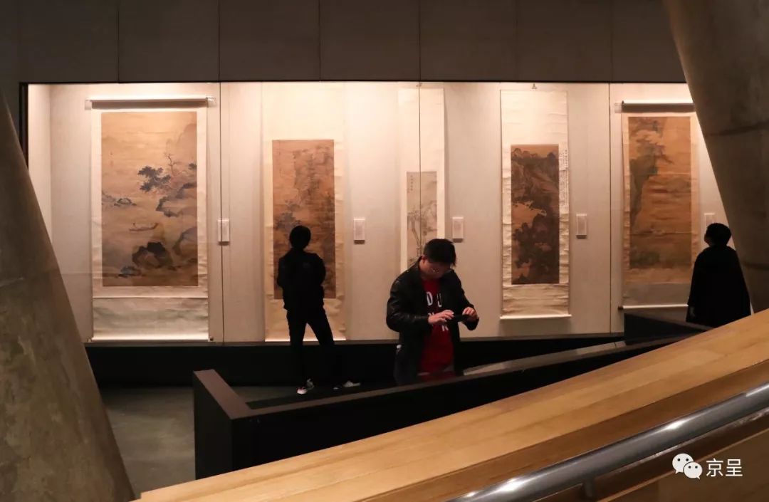 首都博物馆《江山如画》展厅内,参观者在悠闲欣赏画作。