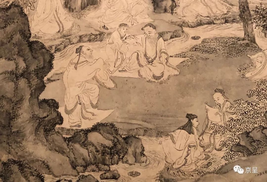 明代黄宸《兰亭修禊图》卷,用想象将这个历史上最有名的集会展现出来。