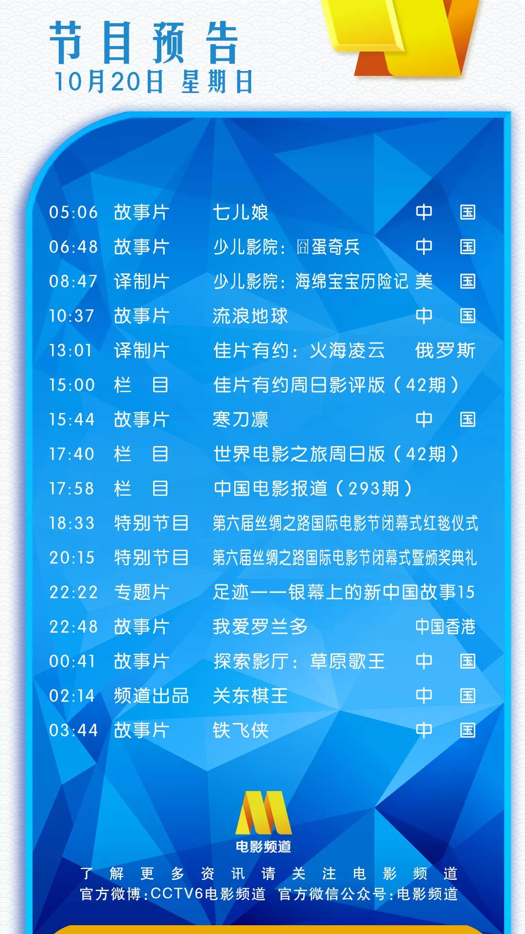 开奖啦 | 10月20日(星期日)CCTV6节目预告