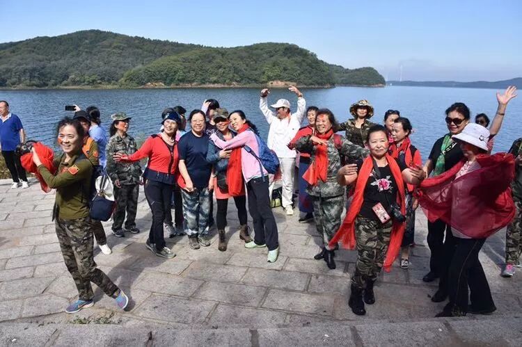 集体快乐旅游,中间穿白衣服的是王恩启老师