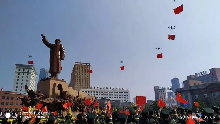 沈阳中山广场常德军休老兵合唱团,参加《我的祖国》快闪庆贺活动,有部分舞蹈队成员参加。