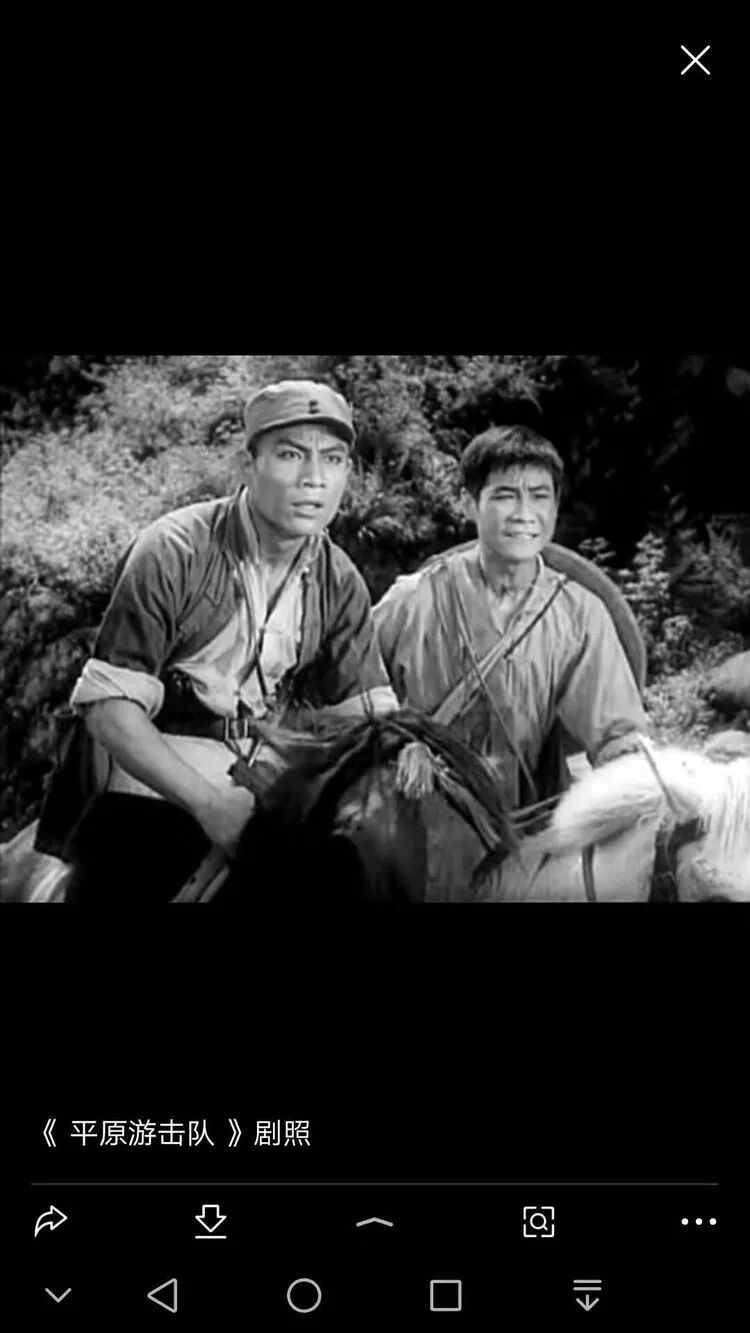 在《平原游击队》中王恩启饰演小侦员和郭振清同镜头