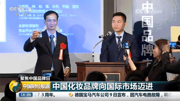 ▲CCTV 2财经频道报道:品牌董事长喝面膜液