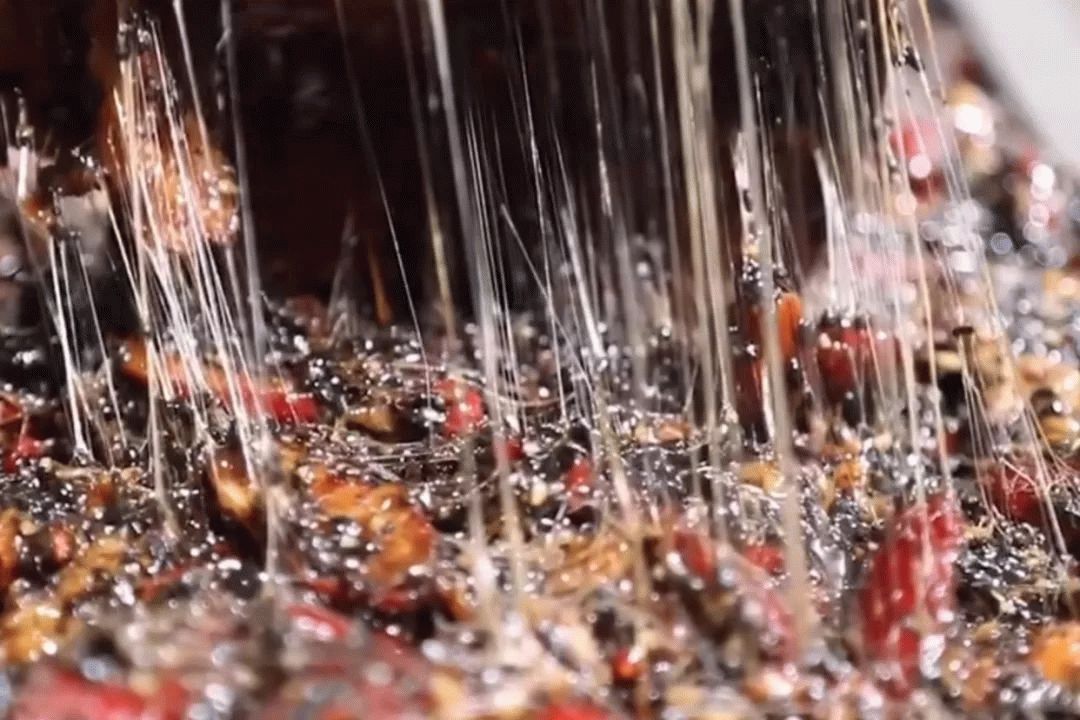 随着胶汁浓稠,颜色逐渐变得纯正,