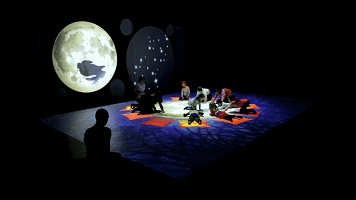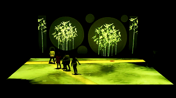 还会被邀请到舞台上弄笛起舞、挑灯逐兽,循着四季变化在花开大地的美景中养蚕缫丝、伴着金石之声嬉戏于乡野田间,抑或变身玉兔于月宫静心捣药,乘坐小白船游历水墨风景……