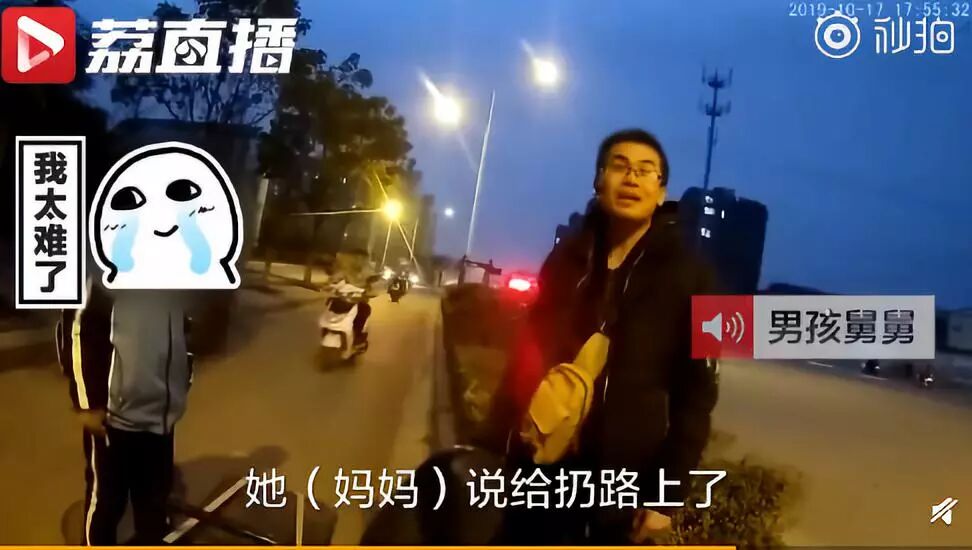 10月17日傍晚,民警发现一小男孩迷路,孩子舅舅随后赶来接人。原来,男孩上小学三年级,因成绩不理想,妈妈接他回家时,一怒之下将他丢在半路。网友:谢谢老妈当年不丢之恩。(荔直播)