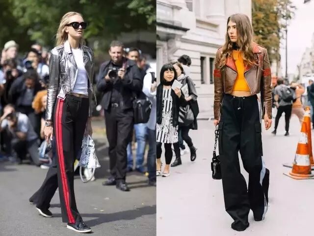 “校服裤”也会用来作一些比较前卫、时尚的搭配,是真正的“旧物新穿”,从整体感觉考虑会更适合选择一双风格匹配的尖头短靴,很酷~