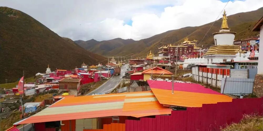 下午近五点到达色达县城时,天空突然出现了大彩虹,从来没有见到过如此绚丽多彩的大彩虹,就在面前如此近,师兄们都说是师父要到来的瑞相,思念师父……