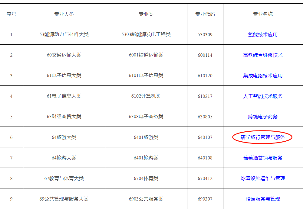 专业代码 640107专业名称 研学旅行管理与服务基本修业年限 三年培养目标本专业培养德、智、体、美、劳全面发展,具有良好职业道德和人文素养,掌握研学旅行相关政策法规和规范标准,熟悉中小学研学旅行相关教育政策、目标、大纲和方案要求,从事研学旅行项目开发运营、策划咨询、线路设计、课程开发等运营、管理及服务工作的高素质技术技能人才。