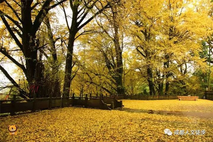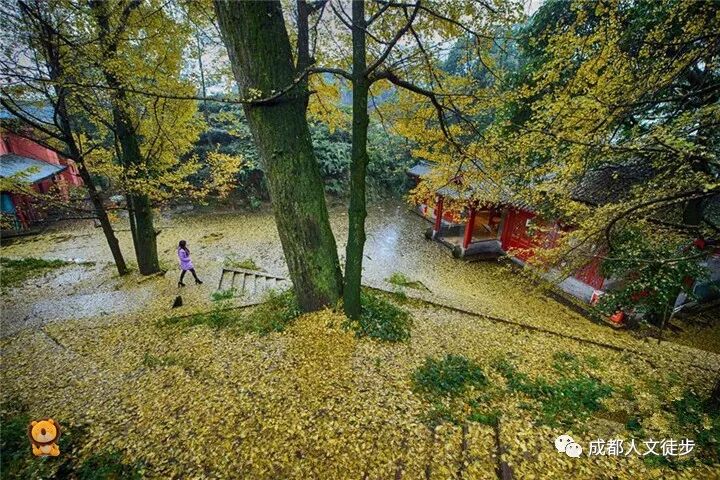 深秋的蒙顶山到处都是金黄的银杏树,下了雨后,满地都是银杏叶,就像满山铺上了一层金黄的地毯。