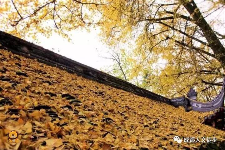 屋前屋后,全是被金黄的落叶铺满,甚至就连瓦缝之间,也被金黄的叶子填满,就像置身于一个童话般的仙境。