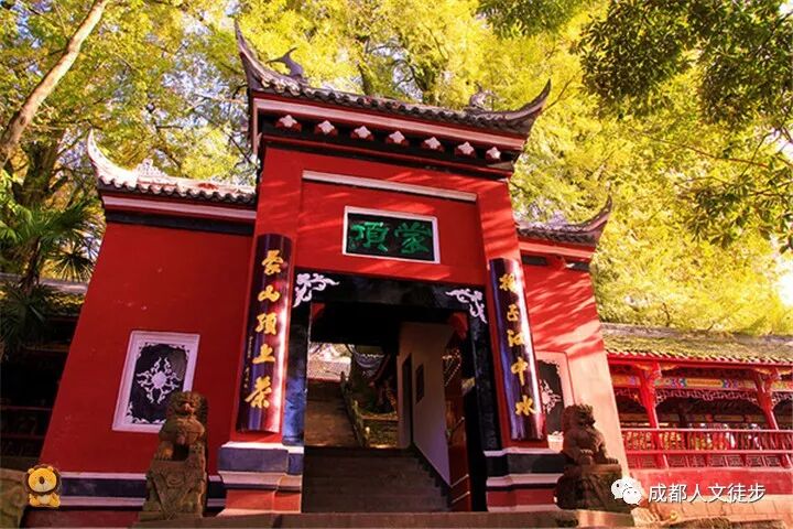 天盖寺周围的2株古银杏树,树龄超过2000岁!是目前中国最古老的人工种植的古银杏群,树大可参天蔽日, 苍劲、秀丽,这12株雌树还被称为“蒙顶银杏十二钗”。