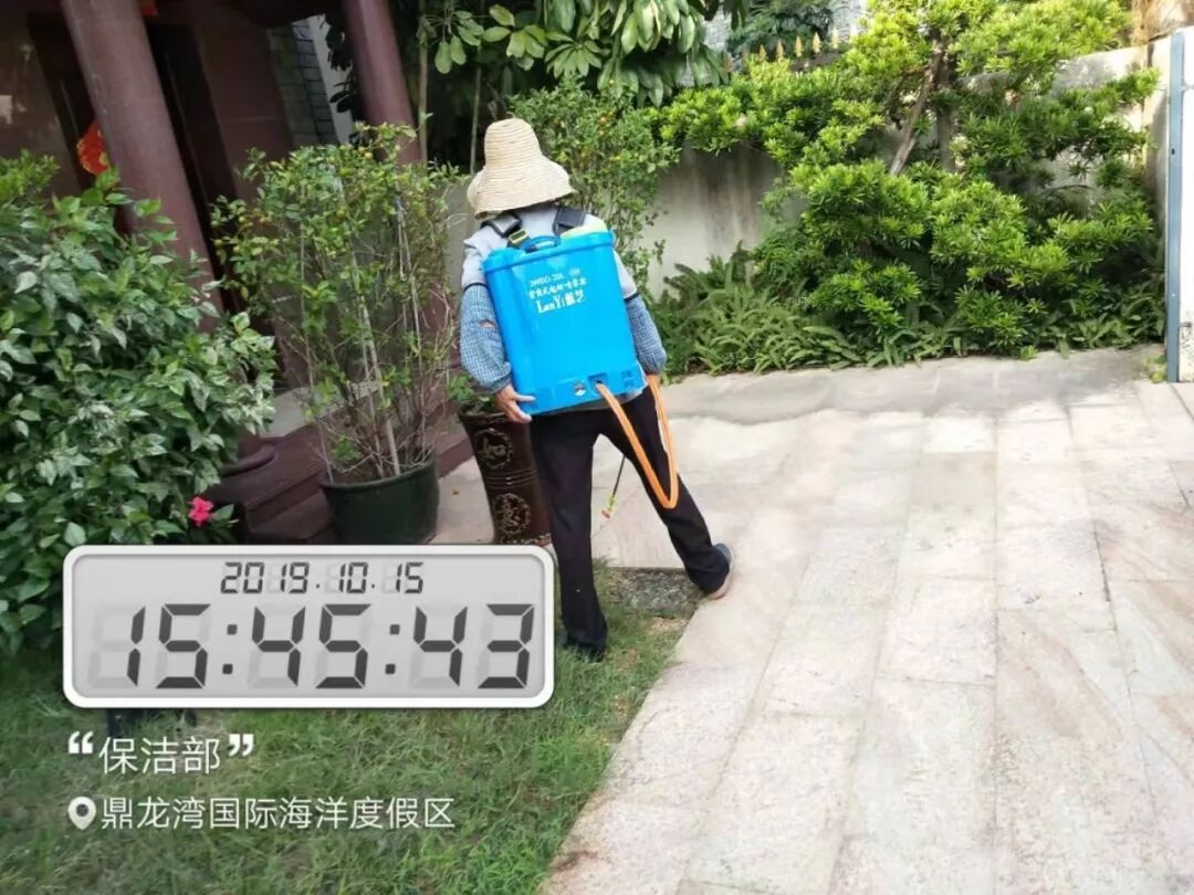 保洁部:保证园区卫生,每天早上清理每栋楼房、马路卫生,下午巡逻保证每栋楼房、马路干净整洁;小区全面除蚊杀虫1次;中心轴水池清理消毒1次;公共厕所和五星级厕所深度清理1次;并配备人员每隔十分钟检查清理保证厕所无异味干净整洁;北面水塘全面清理消毒1次等。