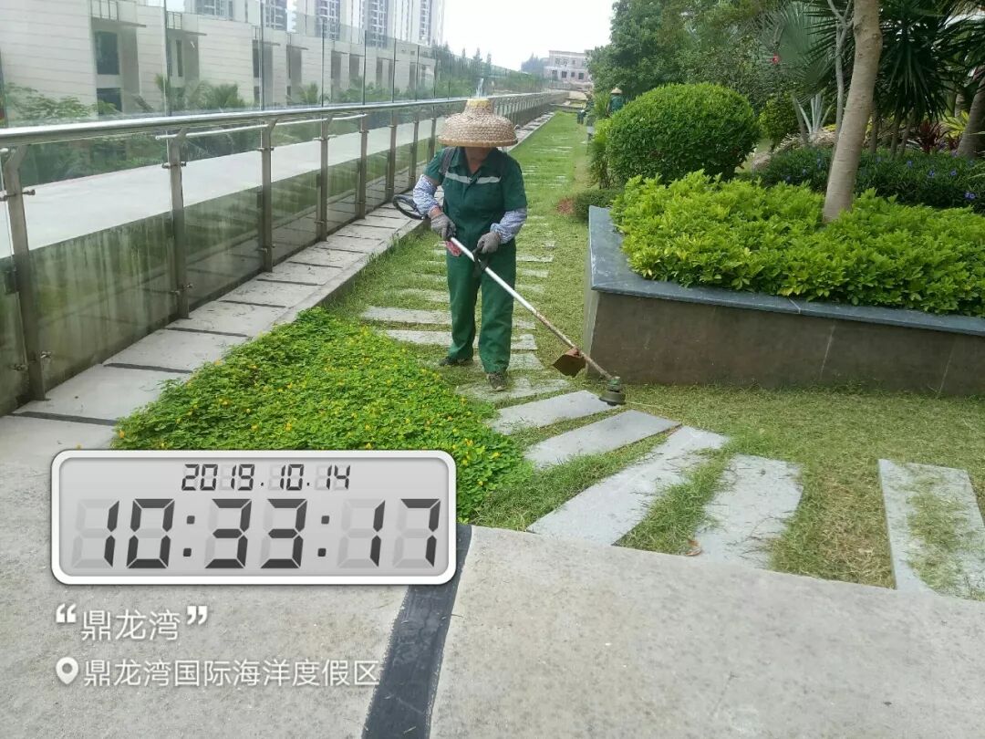 绿化部:保证园区绿化植物健康生长;全区植物每天早晚浇水两次;每天清理绿化垃圾;全区每天除杂草;全区草坪喷杀虫剂一次;观海路、别墅东街修剪地被灌木一次;协助覃林村保洁工作; 排除绿化区域安全隐患。