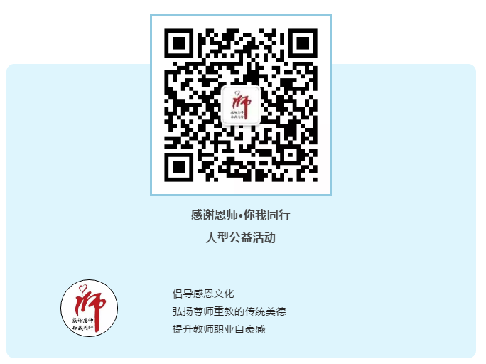 为进一步弘扬中华民族尊师重教的优秀传统,更好地践行社会主义核心价值观,由中国教师发展基金会、中国教育发展基金会主办,教学考试杂志社承办,乐知语文支持,特在全国开展了“感谢恩师?你我同行”大型公益征文活动。谨以此感念师恩!