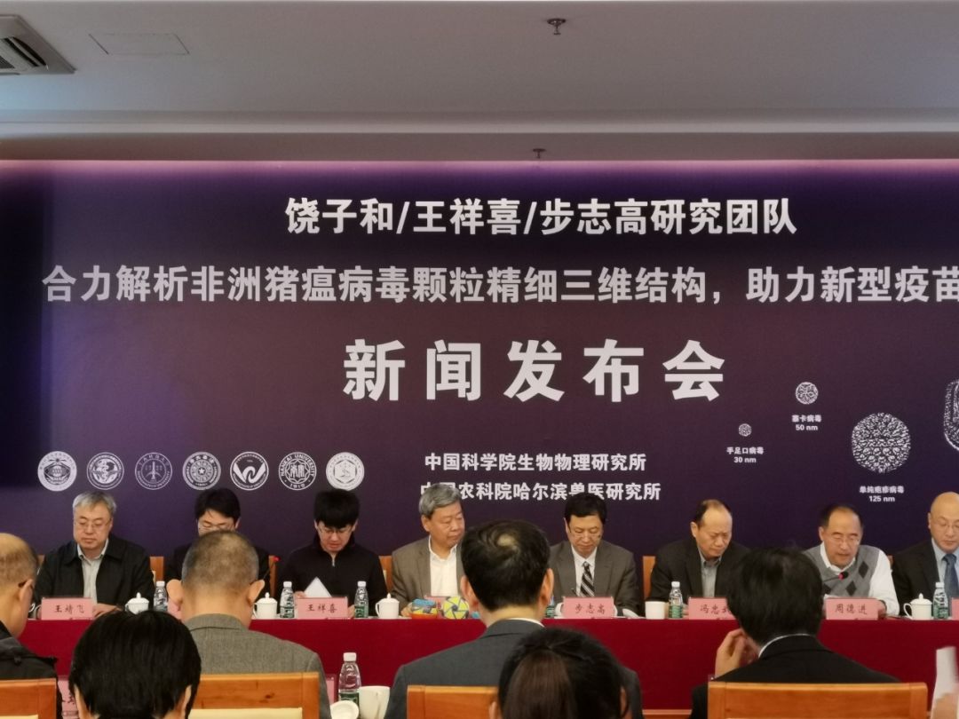 非洲猪瘟在我国爆发后,中国科学院生物物理研究所饶子和/王祥喜团队和哈尔滨兽医研究所步志高团队联合上海科技大学、清华大学、中国科学院微生物研究所、中国科学院武汉病毒研究所、南开大学等单位,于2018年12月开始对非洲猪瘟病毒颗粒和相关抗原分子从基础科研到临床检测以及高效疫苗多方面开展联合攻关研究。