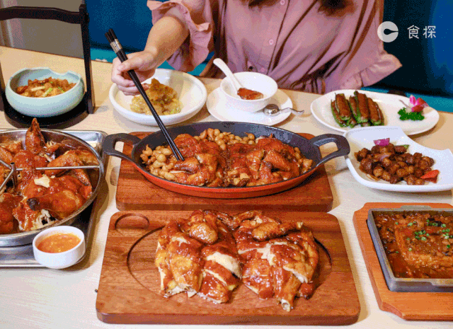 招牌火焰鸡一出场全桌人都停止讲八卦,眼睛直勾勾地看着它...真的好拉风一鸡,专人专车接送,大老远就能闻到香味。